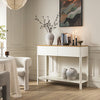 - Complete the look: Pictured with our Agnes Curved Edge Console Table is our Greenwich Oatmeal and Beige Woven Textured Fabric Chairs