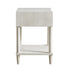 - Complete the look: Pictured with our Thalia Concave 1 Drawer Bedside Table is our Aurora Hand Braided Teal and Bronze Jute Rug and our Eleanor White Boucle Upholstered Bed