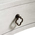 - Gently concave drawer front is complemented with the aged brass clove metal handle.