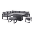 - Comprising of a solid aluminium frame and sumptuous back and seat cushions for added comfort and support, our Albany Large Corner Casual Dining Set is perfect for outdoor gatherings