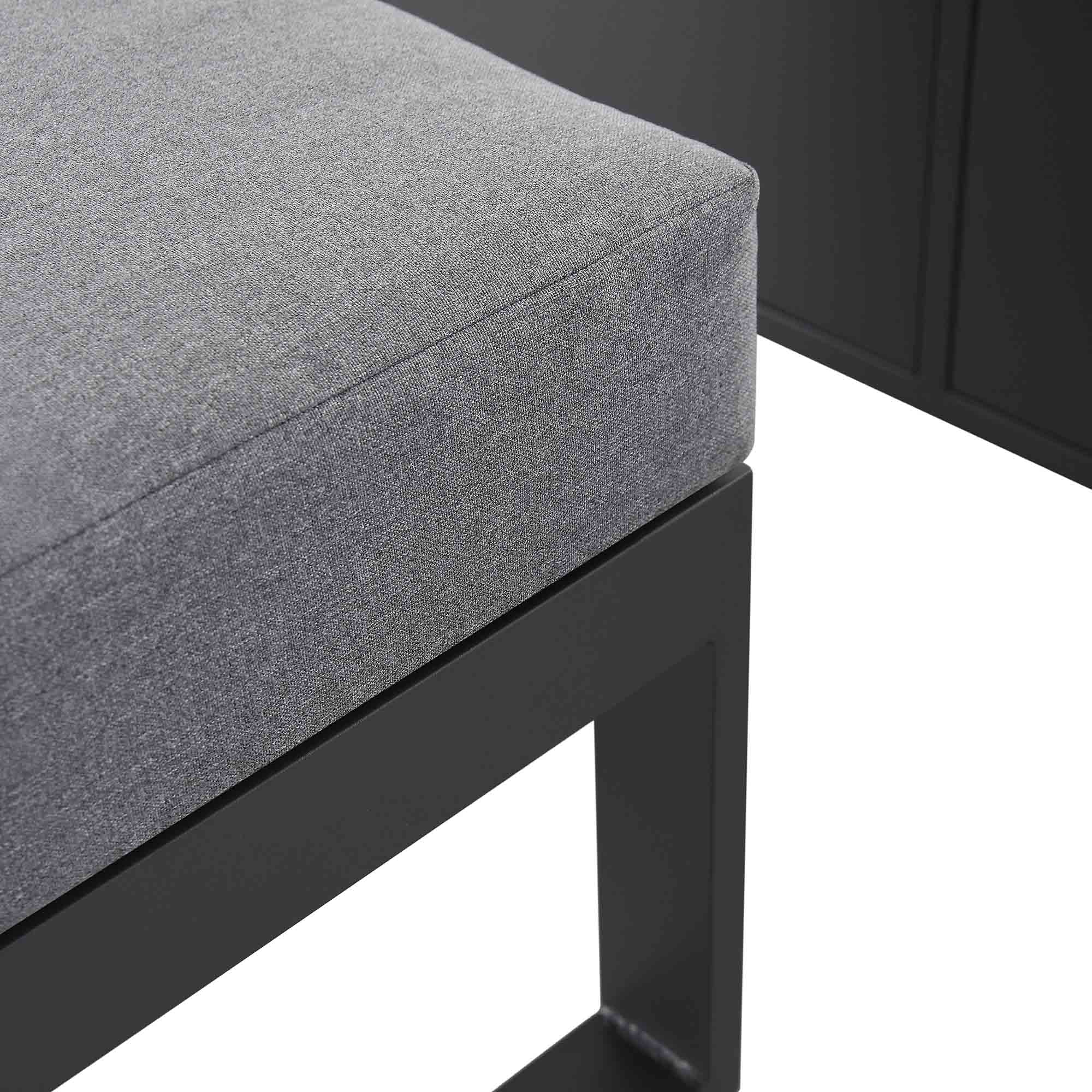 - Amply padded back and seat cushions are upholstered with UV resistant fabric in an elegant grey colour to coordinate the grey frame.
