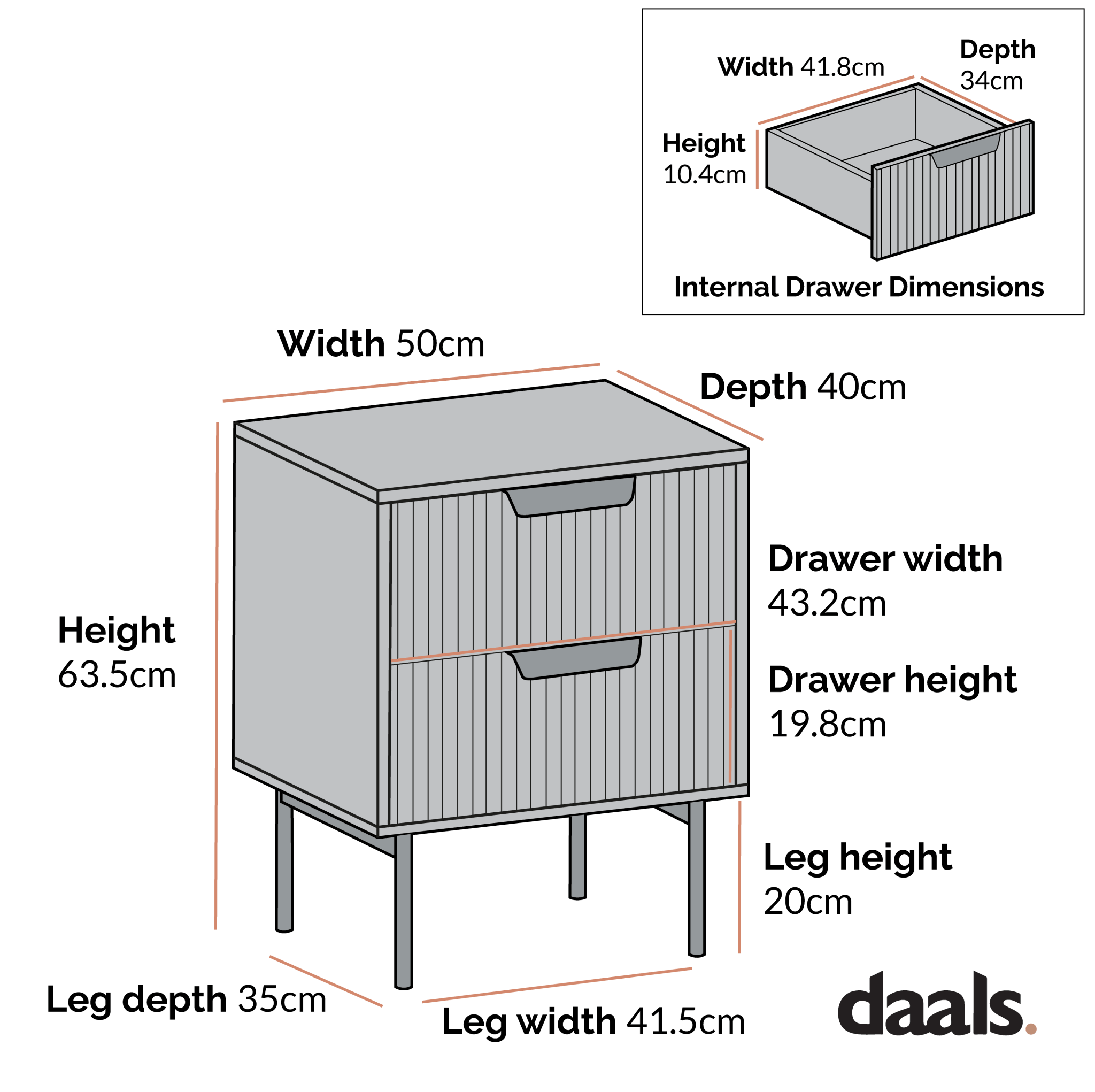 - 2 decent sized drawers slide open on metal runners to offer handy bedside storage.