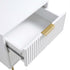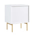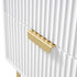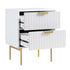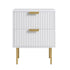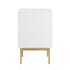 - The cabinet features ridged door surface finished in matte white green paint, paired with gold handles and legs.