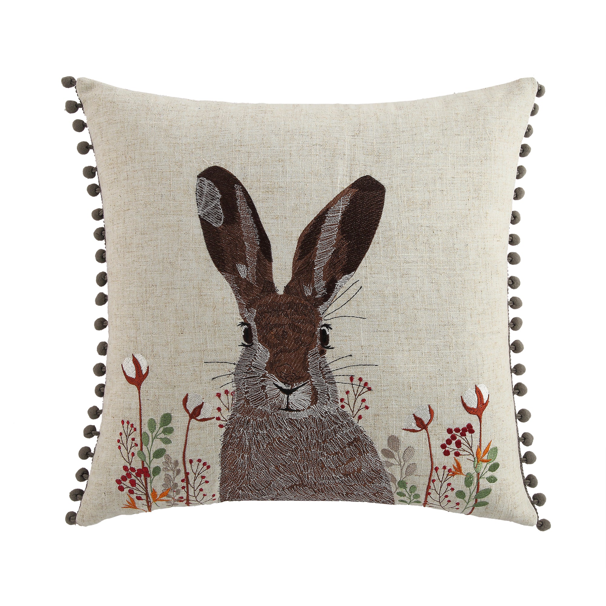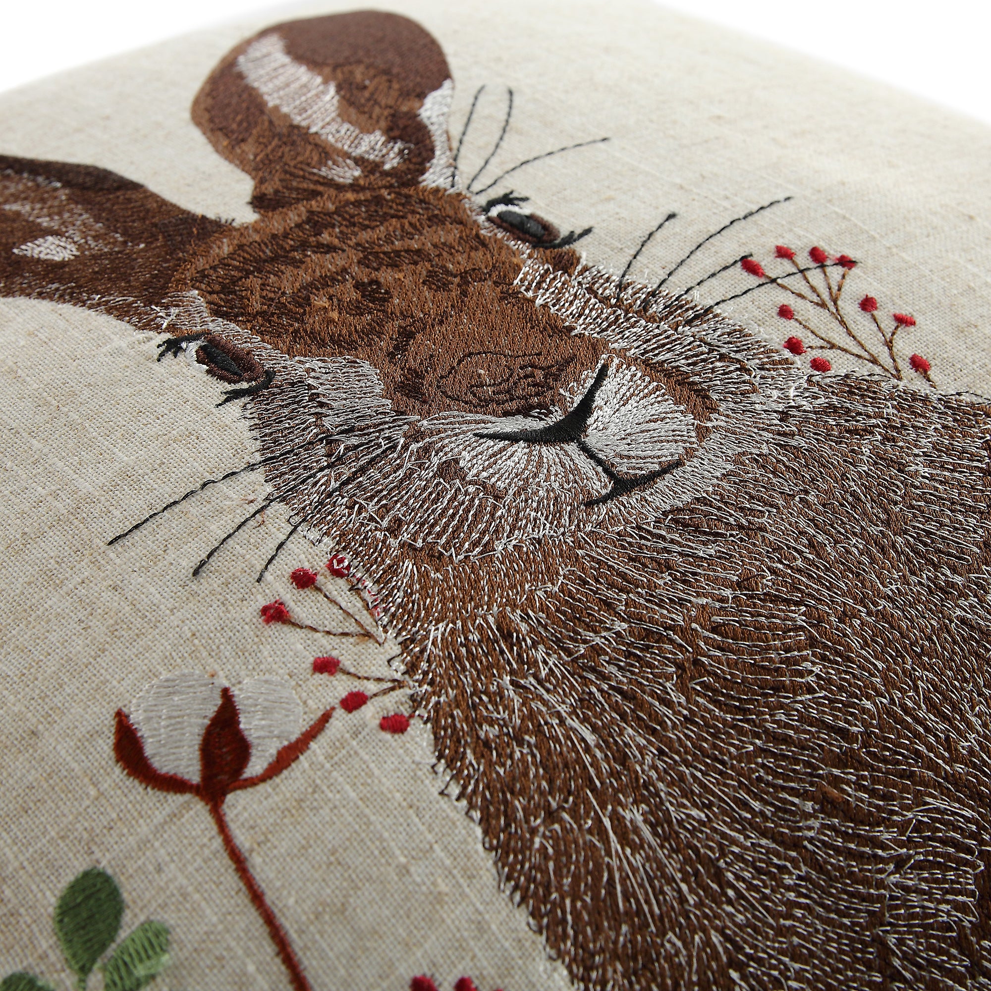 - We just love the outstanding attention to detail of this cushion, featuring a strikingly beautiful hare amongst country foliage.
