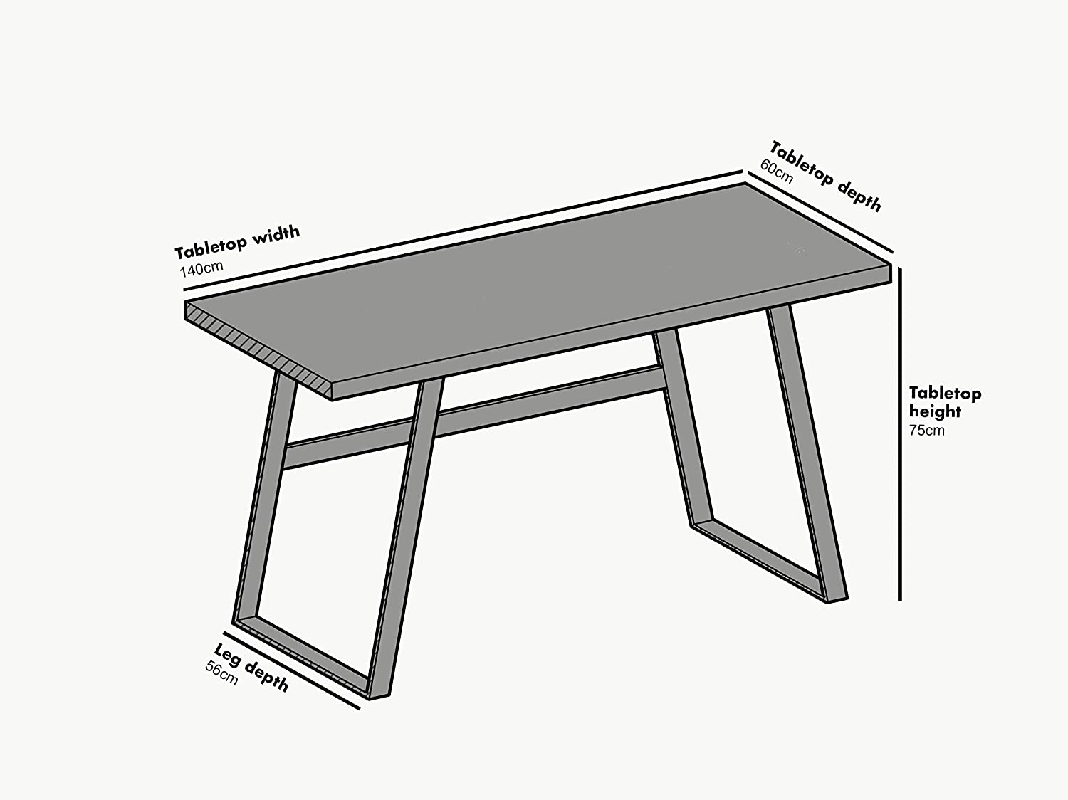 - Size: W 140 x D 60 x H 75 cm. Item Weight: 25.5 KG