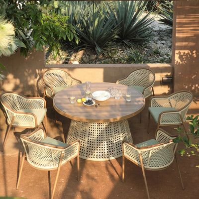 Host your friends and family this summer with a garden dining set from daals. With ample amounts of seating and a variety of materials to choose from, we've got a hard-wearing garden dining set for every home. Whether you want to make a statement with a rising firepit table set - doubling as a coffee and dining table - or prefer a minimalist wood effect set, or go for something in rope weave for added texture and durability. At daals we have a wide range of garden dining sets.