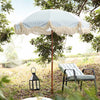 - Our lovely fringed parasol is inspired by retro style in striped pattern. It is going to be a beautiful garden addition to deliver a vintage look.