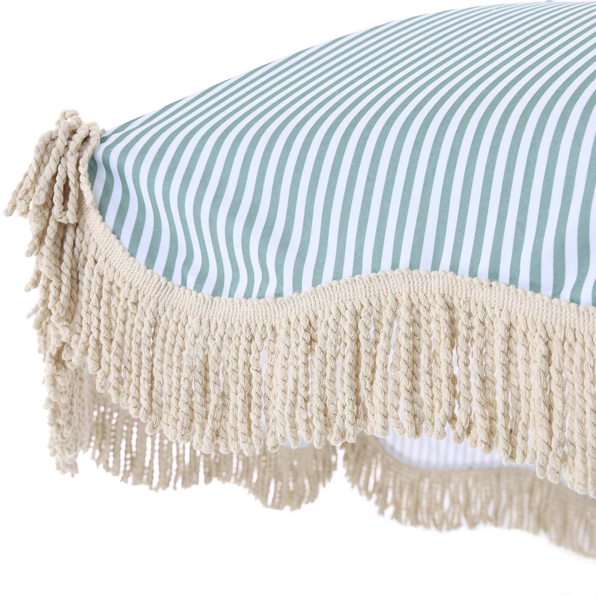 - Complete the look: Pictured with the Gabriel Sage Green & White Striped Fringed Parasol is our Champneys Sage Green Steel Framed & Upholstered Chair which is part of our Champneys Sage Green 2-Seater Steel & Fabric Outdoor Reclining Bistro Set.