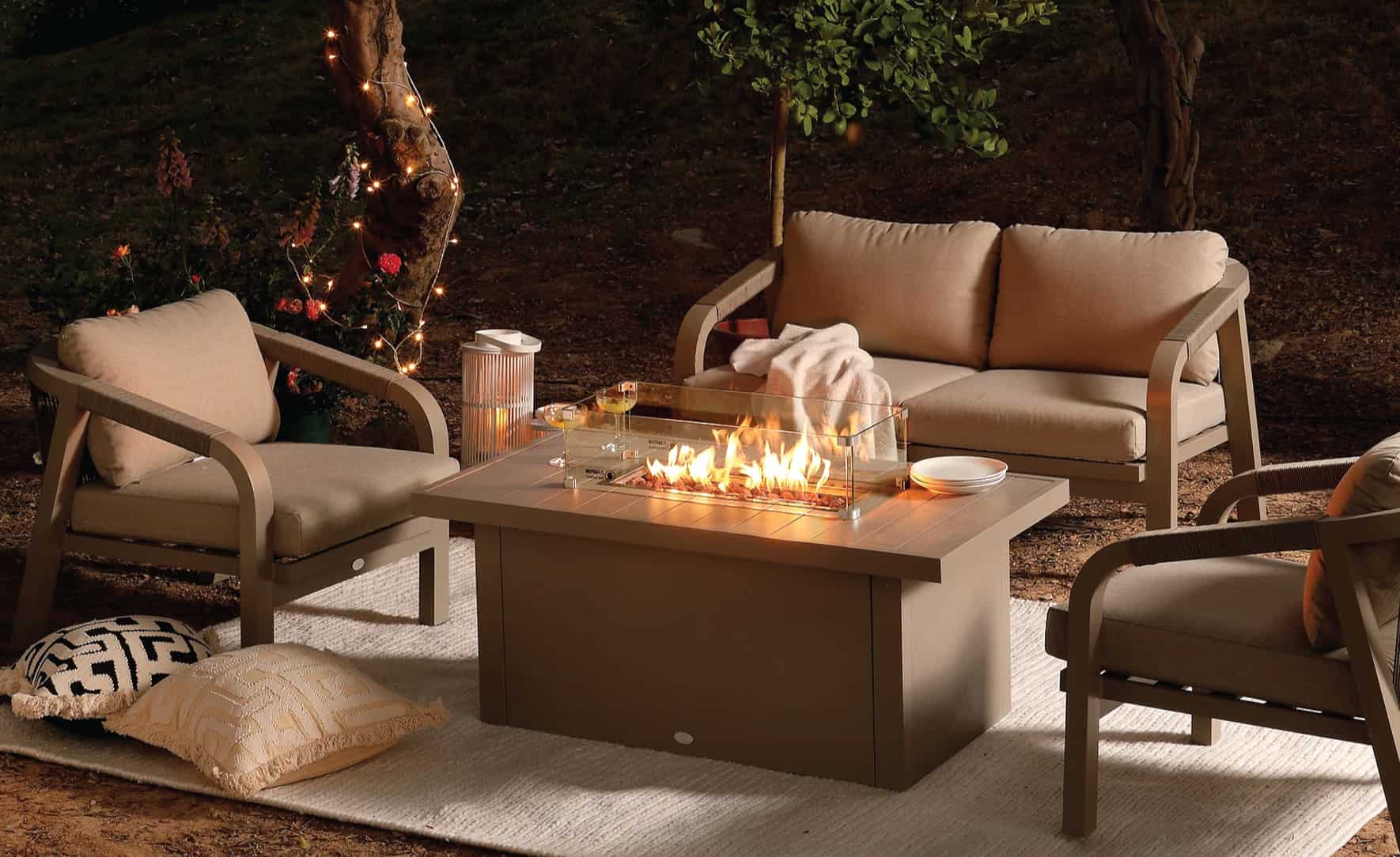 Manresa Rope 5-Seater Firepit Sofa Set, Taupe and Beige Manresa Rope 5-Seater Firepit Sofa Set, Taupe and Beige