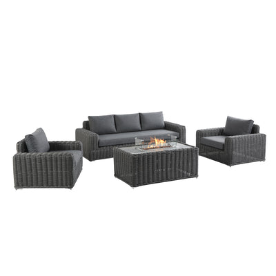 Bellagio Round Wicker Sofa Set with Firepit Coffee Table, Dark Grey Bellagio Round Wicker Sofa Set with Firepit Coffee Table, Dark Grey