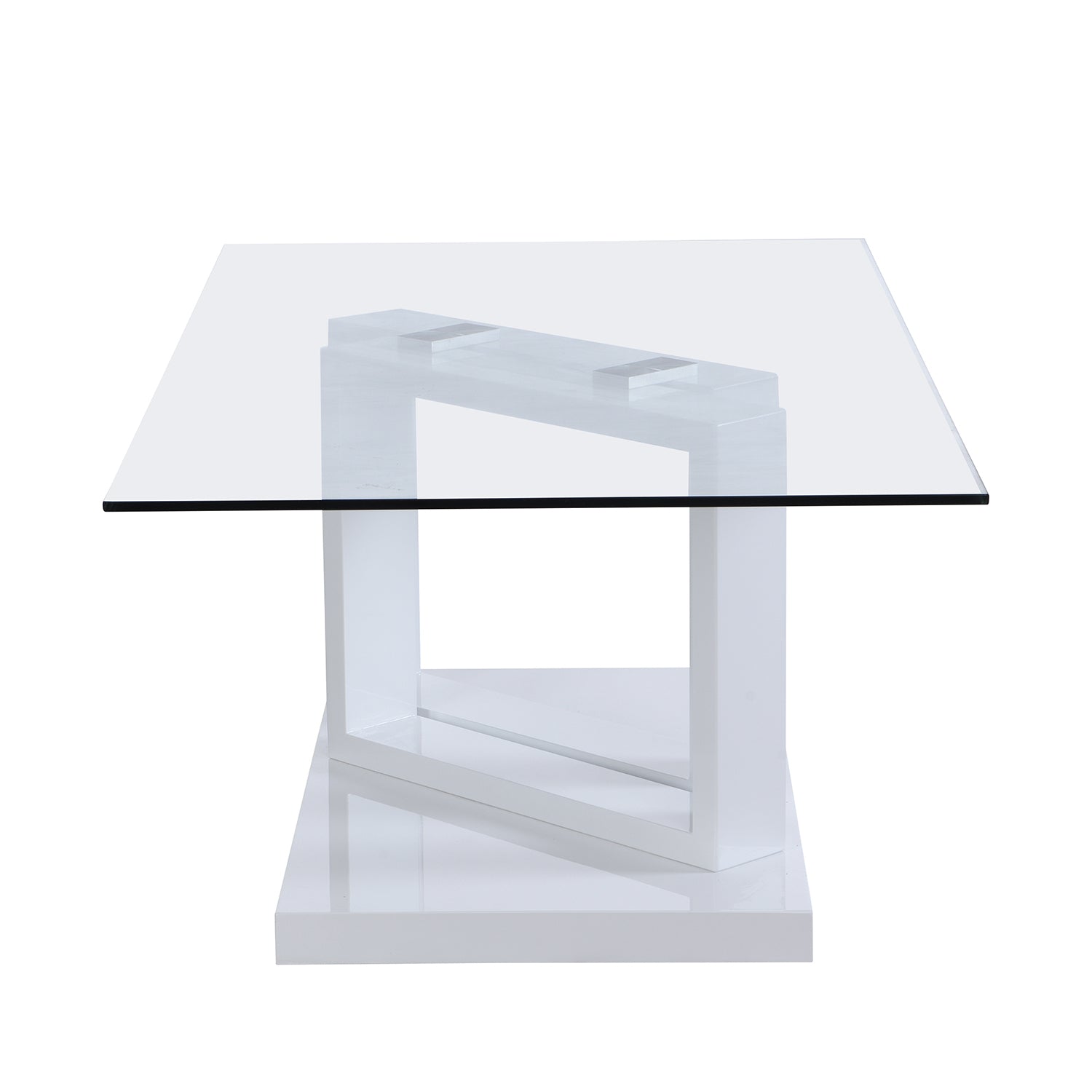 - Table topped with 8mm thick clear tempered glass