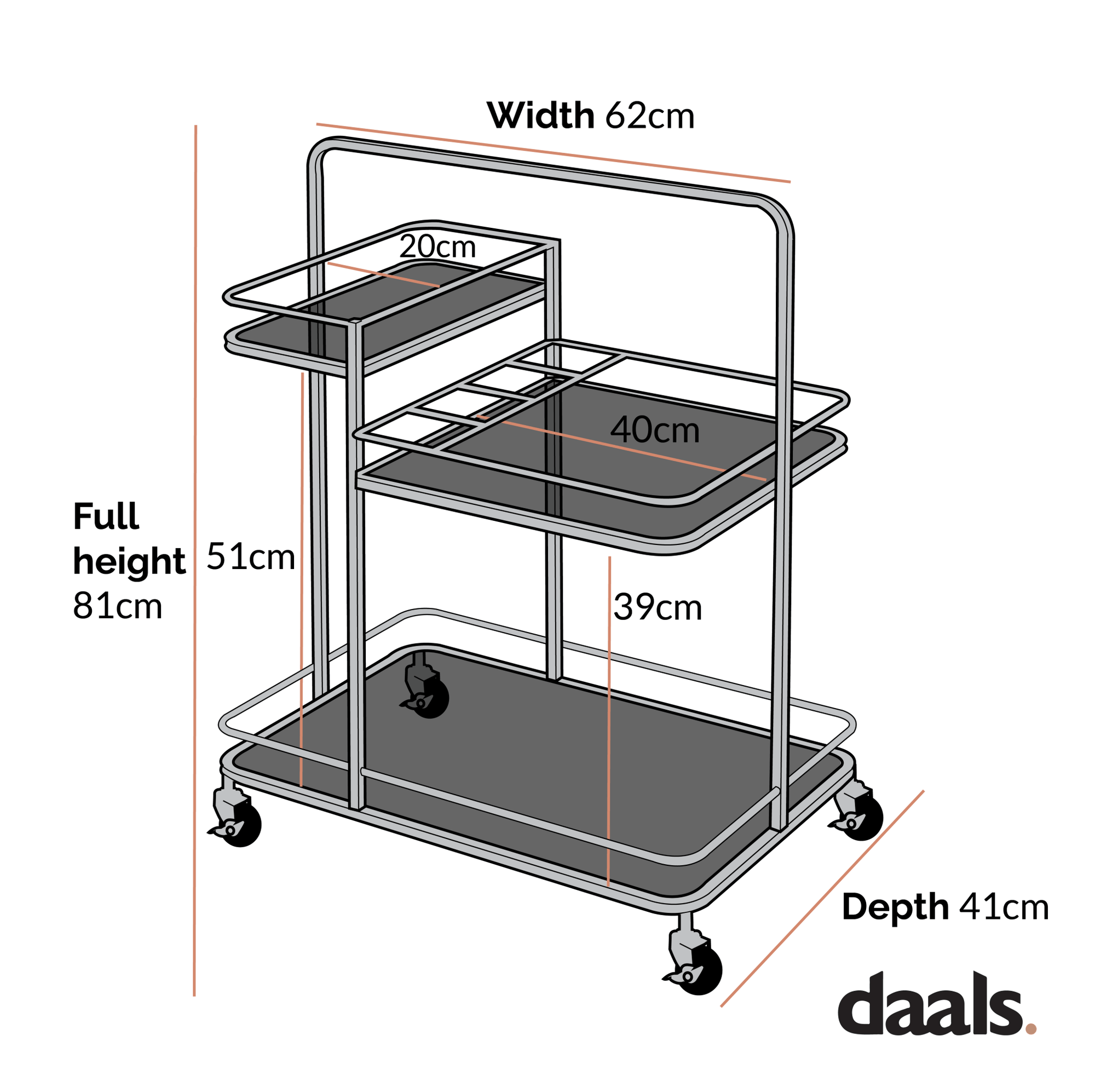 • The Clementine drink trolley is a glamourous accent accessory piece with 3 layers for display and also for practical use.