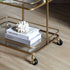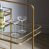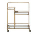 • Crafted from metal and tempered glass, the drink trolley is finished with antique brass gold effect for a vintage look.