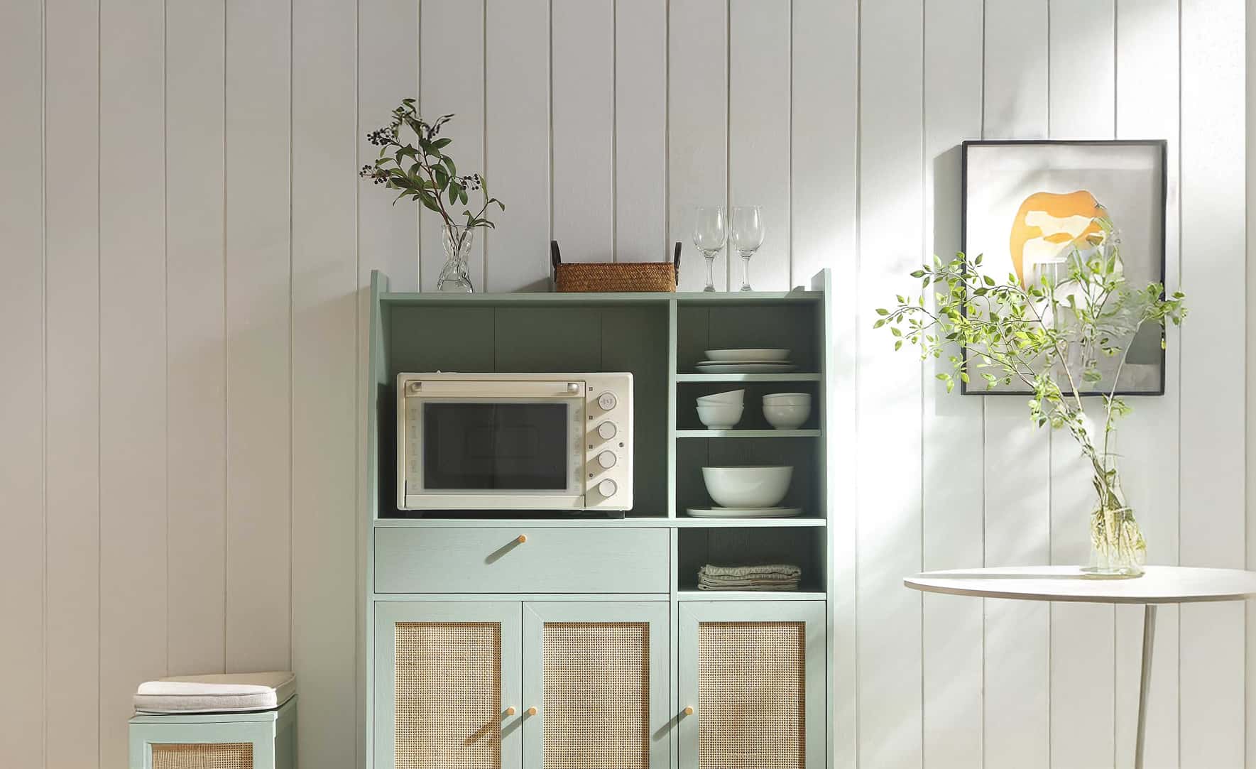 Frances Woven Rattan Kitchen Cabinet, Mint Frances Woven Rattan Kitchen Cabinet, Mint
