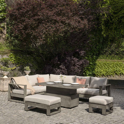 Montrose Aluminium Large Corner Casual Dining Set with Rising Table, Brushed Silver Oak Montrose Aluminium Large Corner Casual Dining Set with Rising Table, Brushed Silver Oak