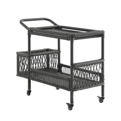 Willowbrook Lattice Weave Rattan Bar Cart, Dark Grey Willowbrook Lattice Weave Rattan Bar Cart, Dark Grey