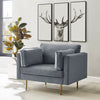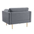 - Add a pop of rich colour to your living space with our Pelham velvet armchair. The stylish profile accented by neatly tailored cushion piping and tapered gold colour legs brings contemporary look to your home.