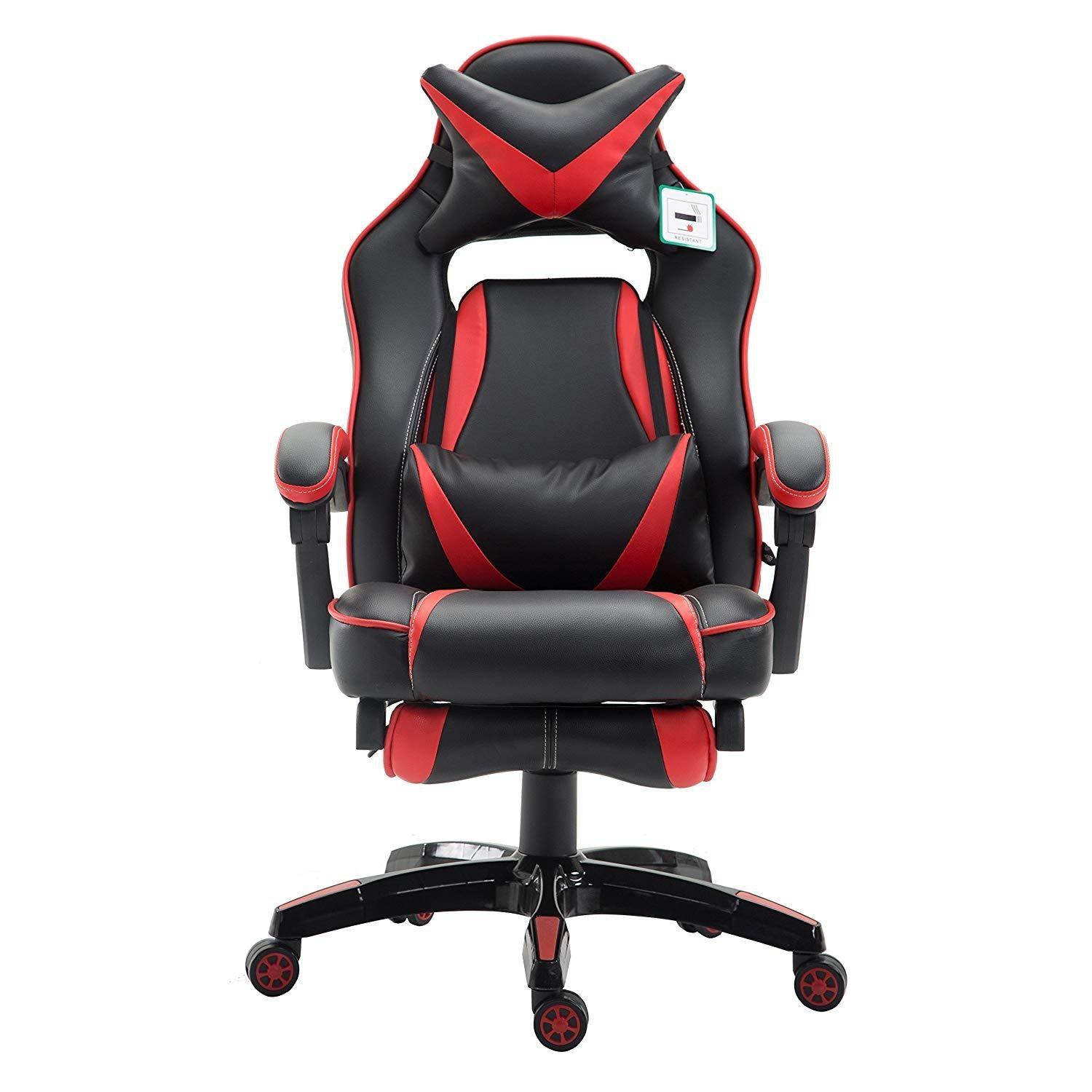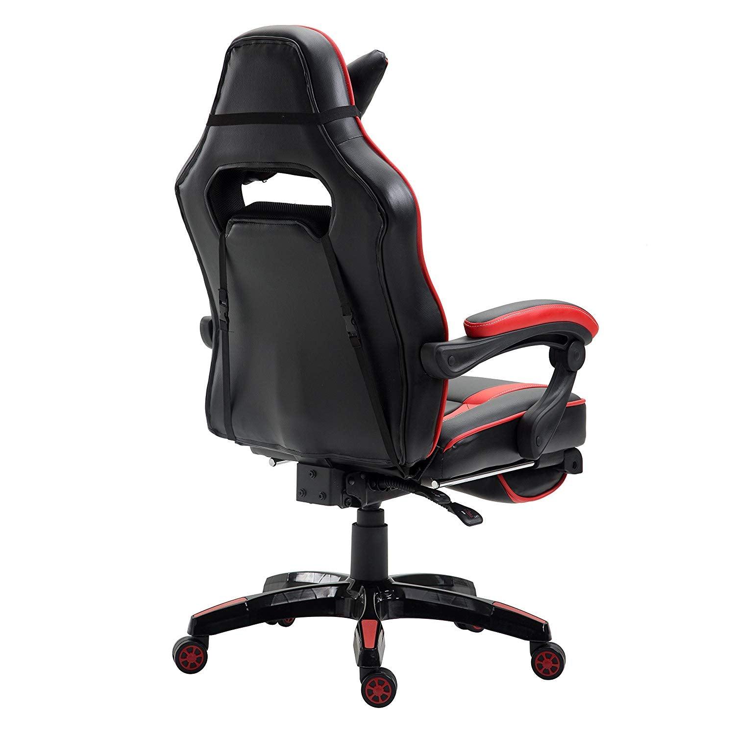 High Back Recliner Gaming Swivel Chair with Footrest & Adjustable Lumbar & Head Cushion, MR49 Black & Red