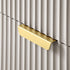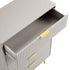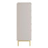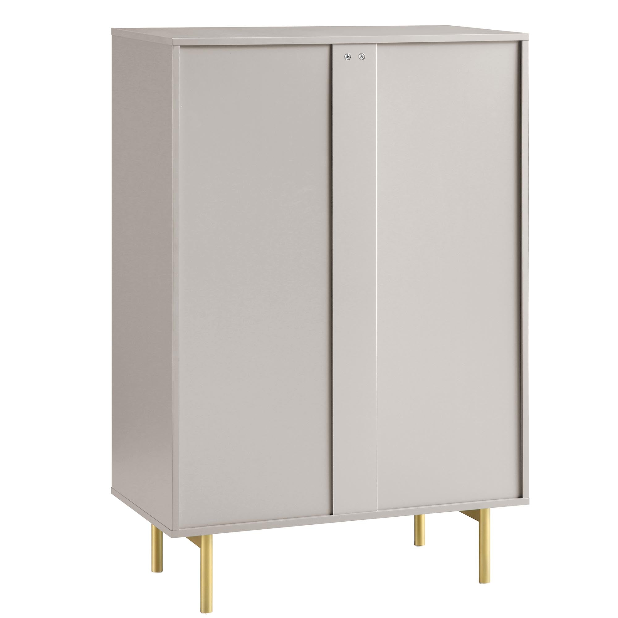 • Ridged door surface finished in matte taupe paint, paired with gold handles and legs give a striking stylish look.