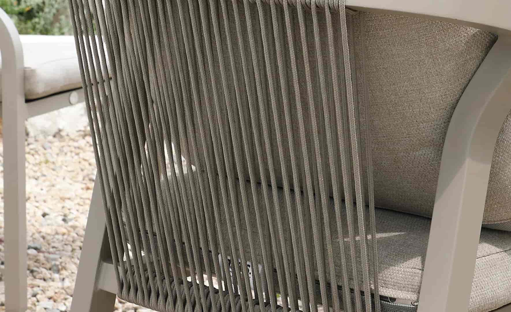 Montebello 4-Seater Outdoor Taupe Rope and Aluminium Sofa Set with White Ceramic Coffee Table Montebello 4-Seater Outdoor Taupe Rope and Aluminium Sofa Set with White Ceramic Coffee Table