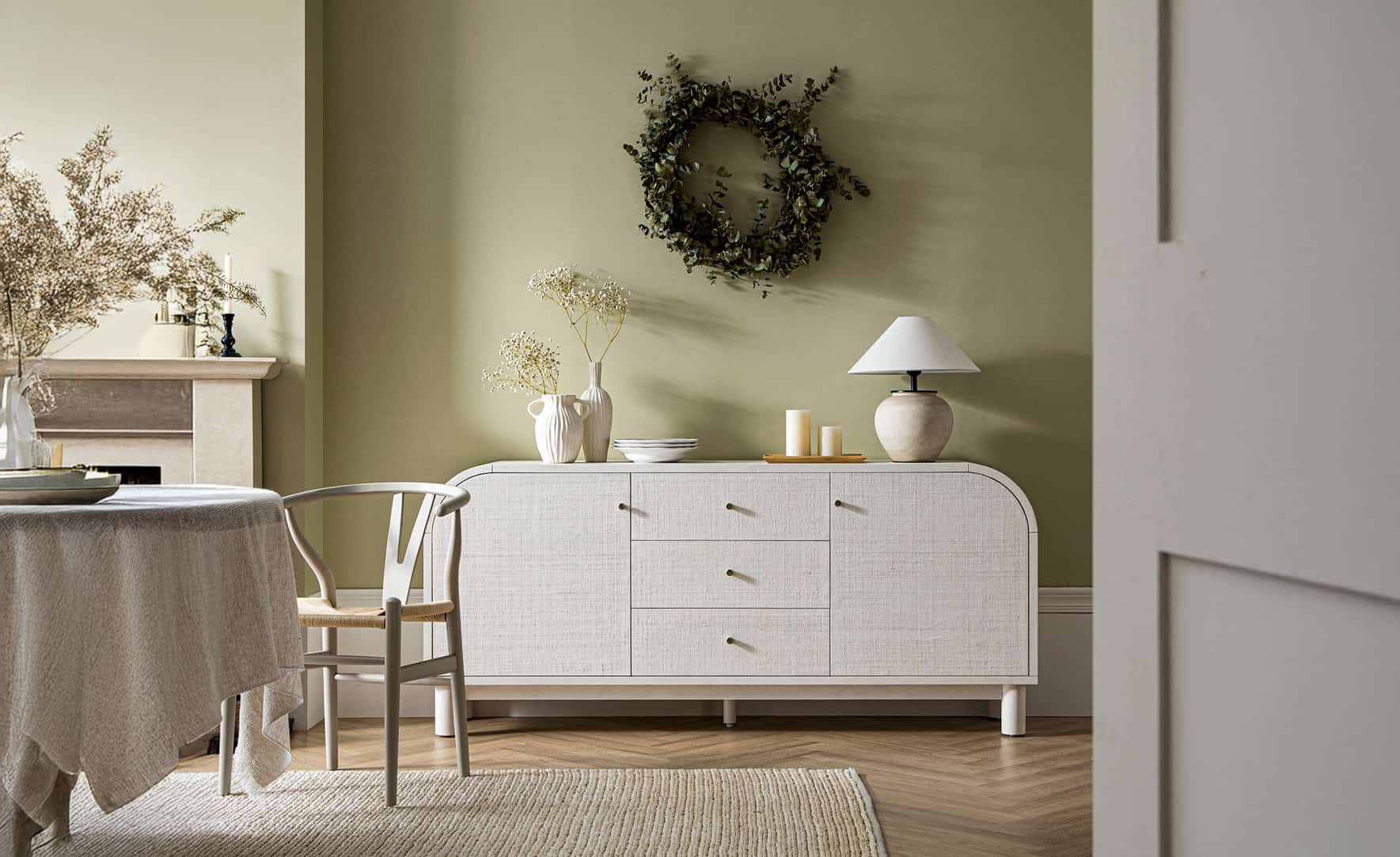 Sideboards with substance. From rich walnut to natural oak and woven rattan, each piece offers useful storage and a considered finish. Whether you're storing glassware, tech or the everyday bits that never quite find a place, these sideboards work across dining rooms, living spaces and hallways, with drawers, doors and smart details built in.