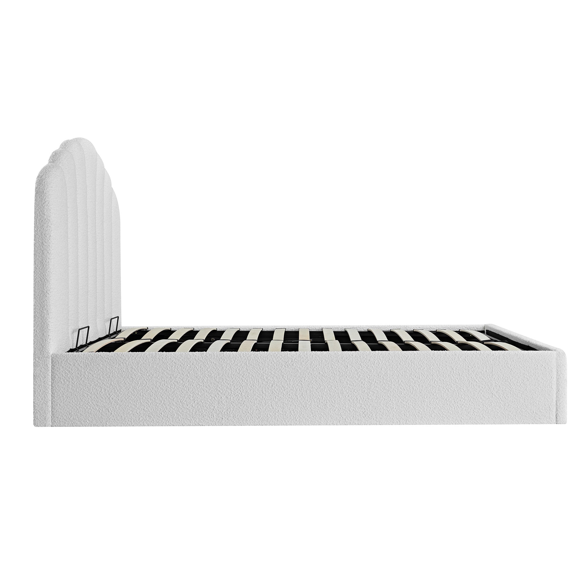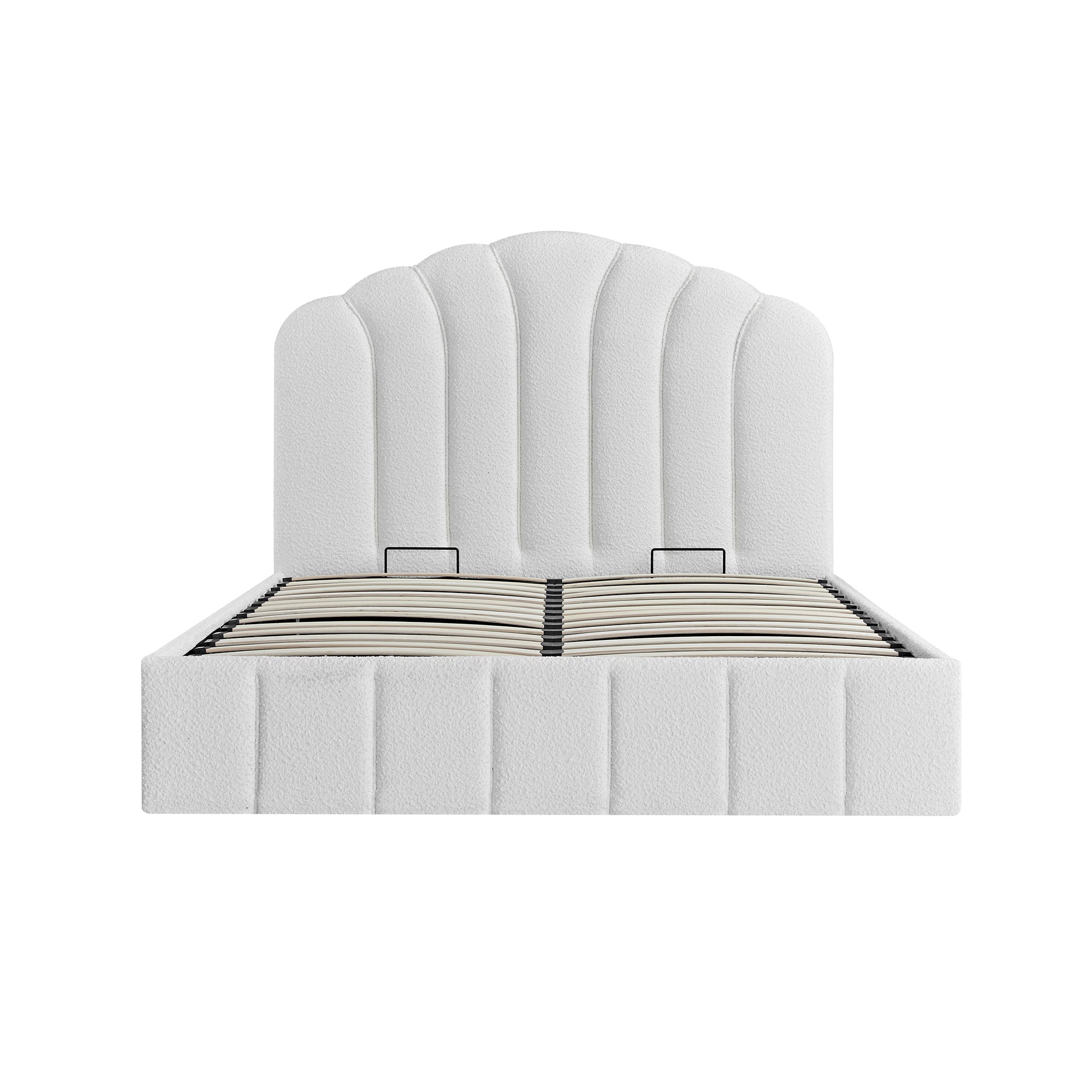 - Complete the look: Pictured with the Hana Ecru Boucle Ottoman Storage Bed is our Chinnor Beige Boucle Accent Chair, Maison Cream Floral Quilted Velvet Bedspread, Oakham Deep Greige Bedside Table, Knox Rust Olive & Beige Crewelwork Cushion, Knox Pink Green & Beige Crewelwork Cushion and Yasmin Kilim Pink Handwoven Wool & Jute Rug.