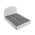 - The scalloped headboard, gently structured with vertical panelling, offers a subtle architectural shape, creating visual interest without excess.