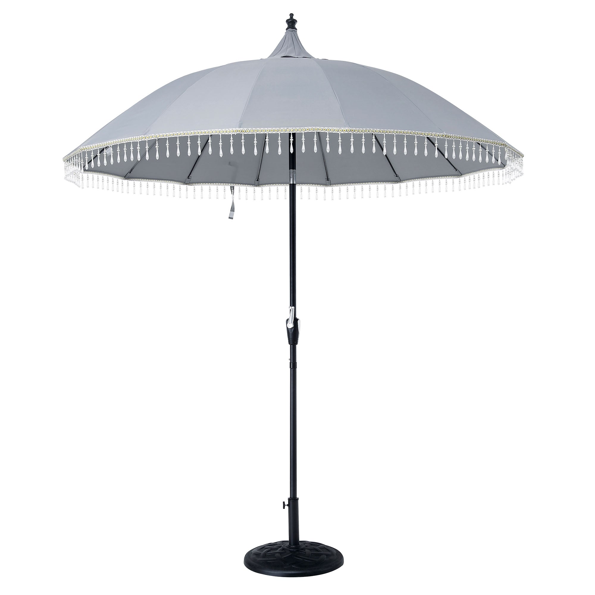 - Our Hacienda 2.4m parasol with beaded details is perfect for relax, play or dine in your back garden.