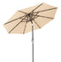 - Our large 3m parasol comes with 24 pre-installed energy-saving LED lights alongside the canopy ribs powered by solar energy collected by the attached panel.
