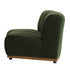 - Upholstered with earthy moss green velvet fabric, the sofa modules are mounted on light walnut colour stained solid wood bases.