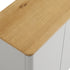 - Complete the look: Pictured with the Agnes Dove Grey Oak Top Curved Edge Sideboard is our Daphnis Camel Velvet 2-Seater Sofa and Footstool.