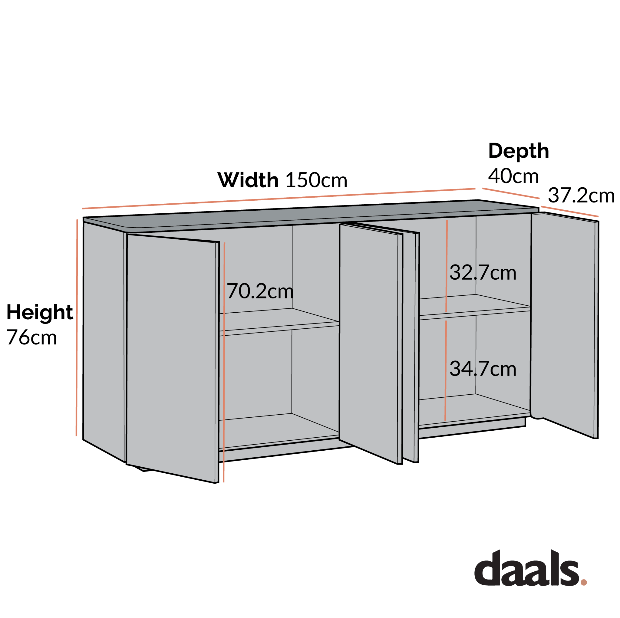 - The sideboard features 4 push to open cabinet doors and ample storage space inside.