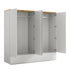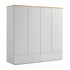 - The four door wardrobe features handle-less curved profile thanks to the push-open design cleverly replace any handles for streamlined profile.