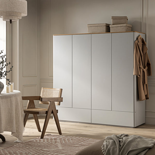 - With its clean design and soft lines, the Agnes four door wardrobe provides a stylish storage solution for the bedroom.