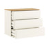 - The chest offers 3 decent sized drawers on metal runners for handy storage space to keep your room clutter free. The push open design cleverly replace any handles for streamlined look.