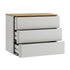 - The chest offers 3 decent sized drawers on metal runners for handy storage space to keep your room clutter free. The push open design cleverly replace any handles for streamlined look.