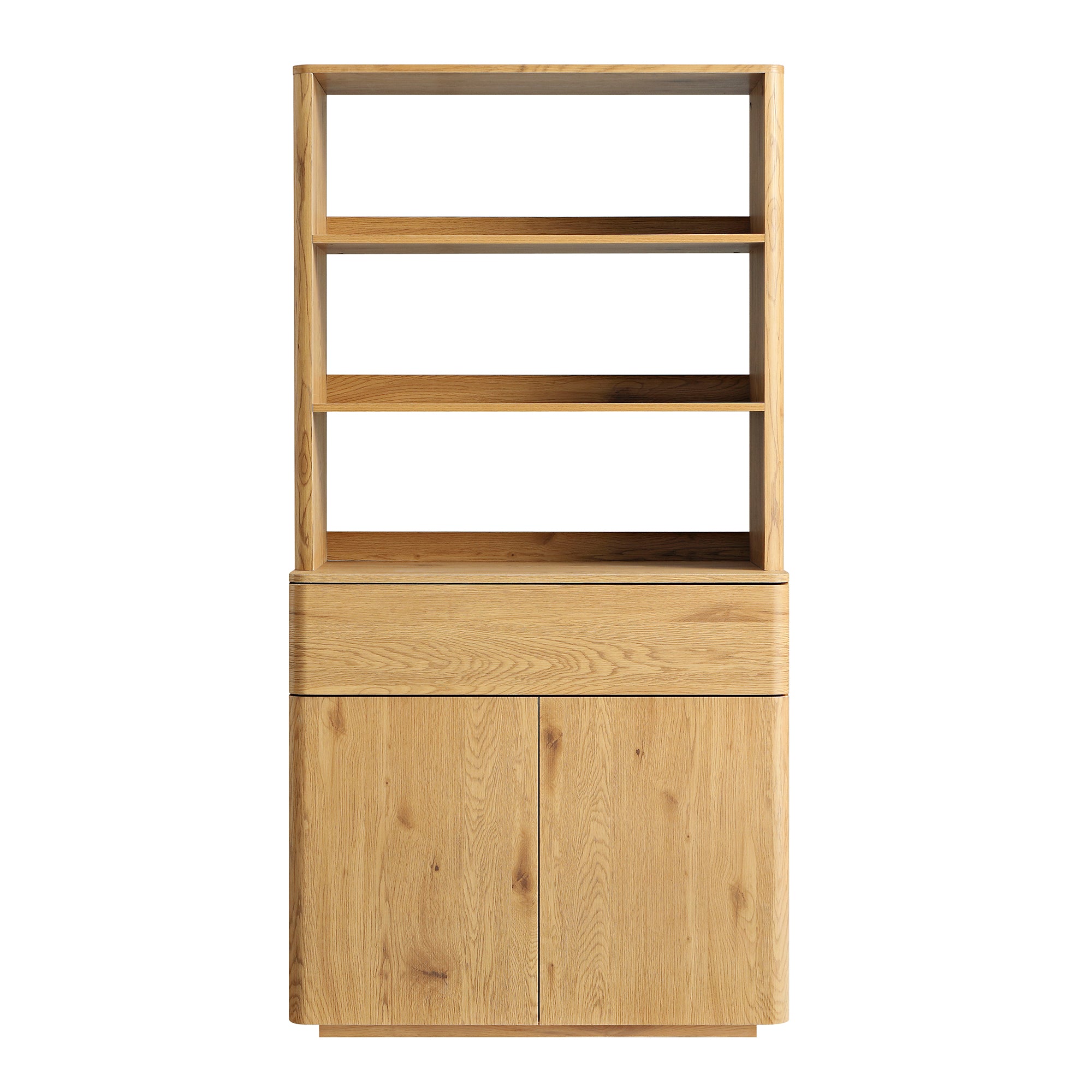 - Finished with oak effect veneer from top to bottom for a streamlined look.