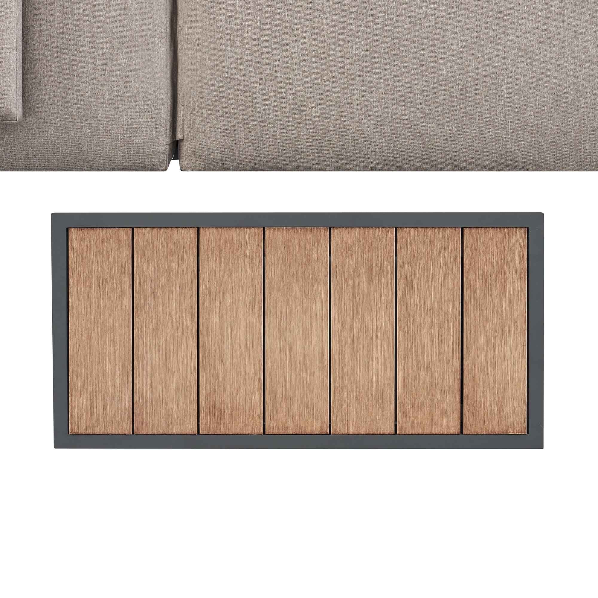 - Crafted from hard wearing and sturdy aluminium frame with a stylish slatted top with hand brushed wood effect finish, our Jardin side table is rust proof without compromising on style
