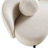 - Round metal legs coated with matte black paint accentuate the curved profile of the seat.