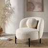 - Round metal legs coated with matte black paint accentuate the curved profile of the seat.