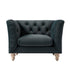 - Boasting opulent tufted back and arms, the armchair offers deep cushioned, supportive seat.