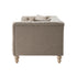 - Slightly distressed turned solid wood legs complement the beautiful neural appeal of the sofa.