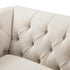 - Complete the look: Pictured with the Ashby Chesterfield Oatmeal Chenille Loveseat is our Indra Light Grey Handwoven Wool Rug, Oakham Wild Cherry Square Coffee Table and Eliza Taupe Striped Ruffle Linen Blend Cushion.