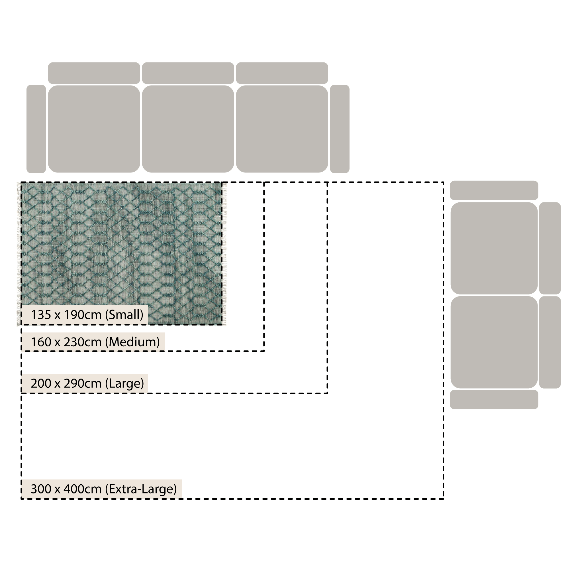 - Small: 190 x 135 cm