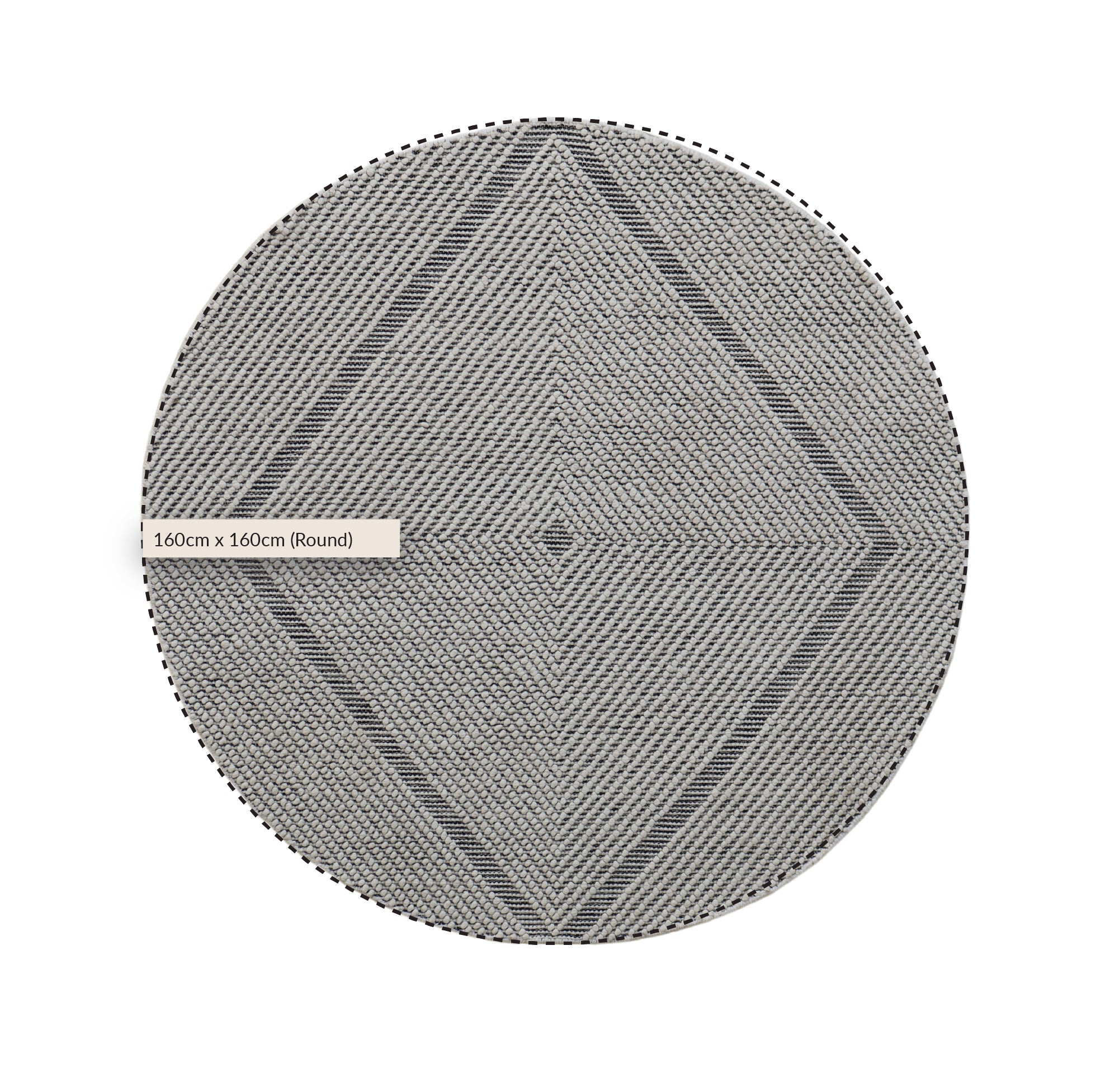 - The Avanti rug features a large monochrome, geometric, diamond design on a salt and pepper look - a combination of black and cream plied wool - which is repeated throughout the rug.