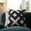 - The Baja monochrome geometric cushion features an embroidered pattern on a woven cotton silk slub base, using black cord and specialised counching stitches.