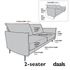 - 3-seater sofa size: W 190 x D 88 x H 84 cm.