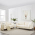 - Upholstered in premium soft beige woven fabric that can go with any décor, encapsulating supporting foam and spring coils for sitting comfort.