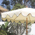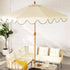 - This beautiful garden parasol is designed with elegant scalloped edge in contrasting navy colour.