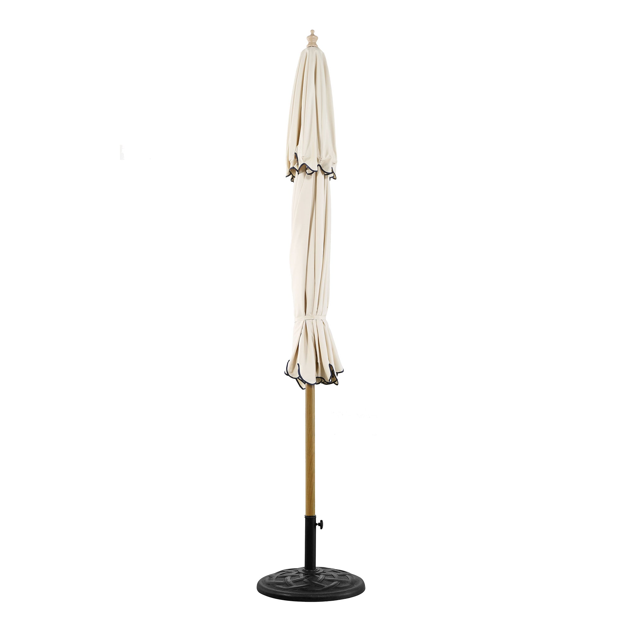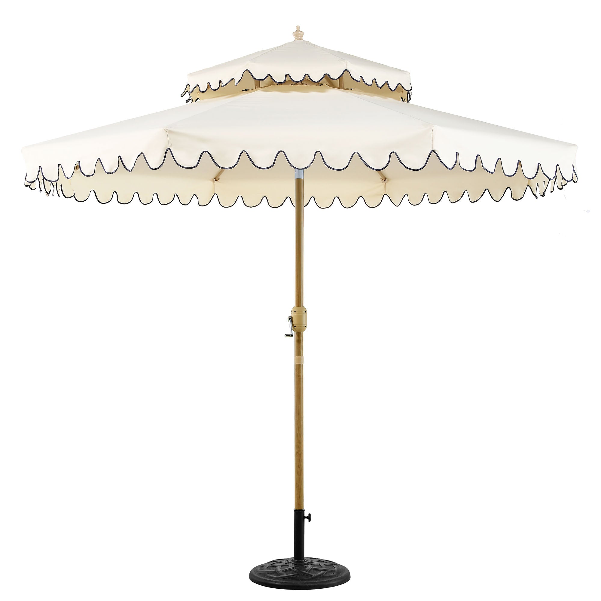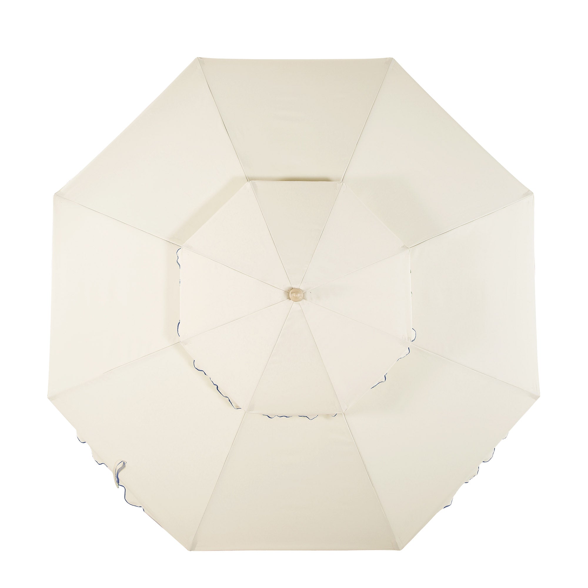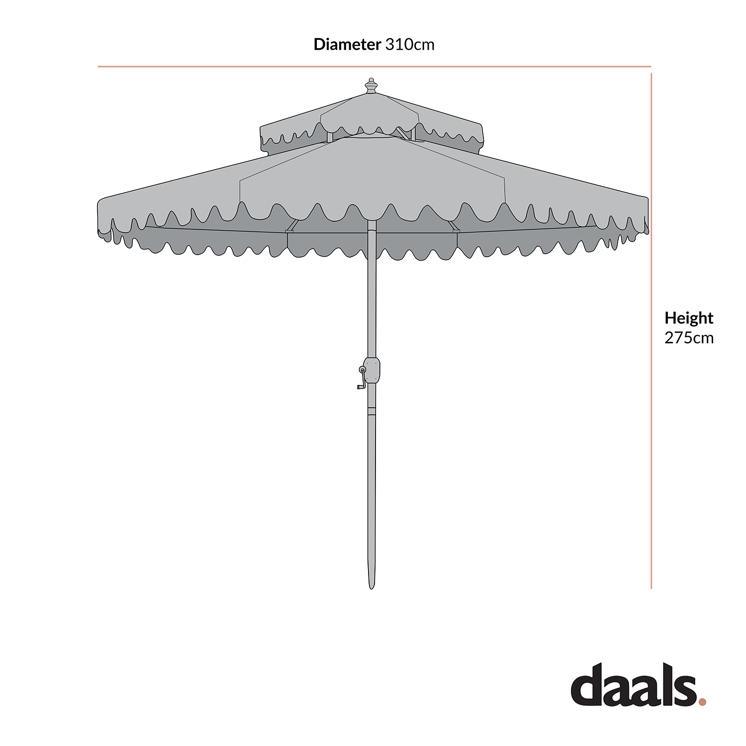 - With an enhanced 3 metre double-top design, this beautiful garden parasol is designed with an elegant scalloped edge in contrasting navy colour.